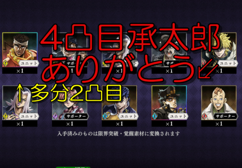 私の最推しである承太郎の決戦バージョンということで貯めた石を解放したのですが…