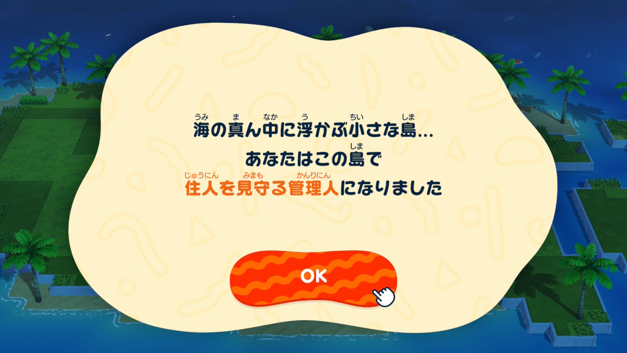 プレイヤーは小さな島の住人を見守る管理人となり、その第一歩として島の名前を決めていきます。