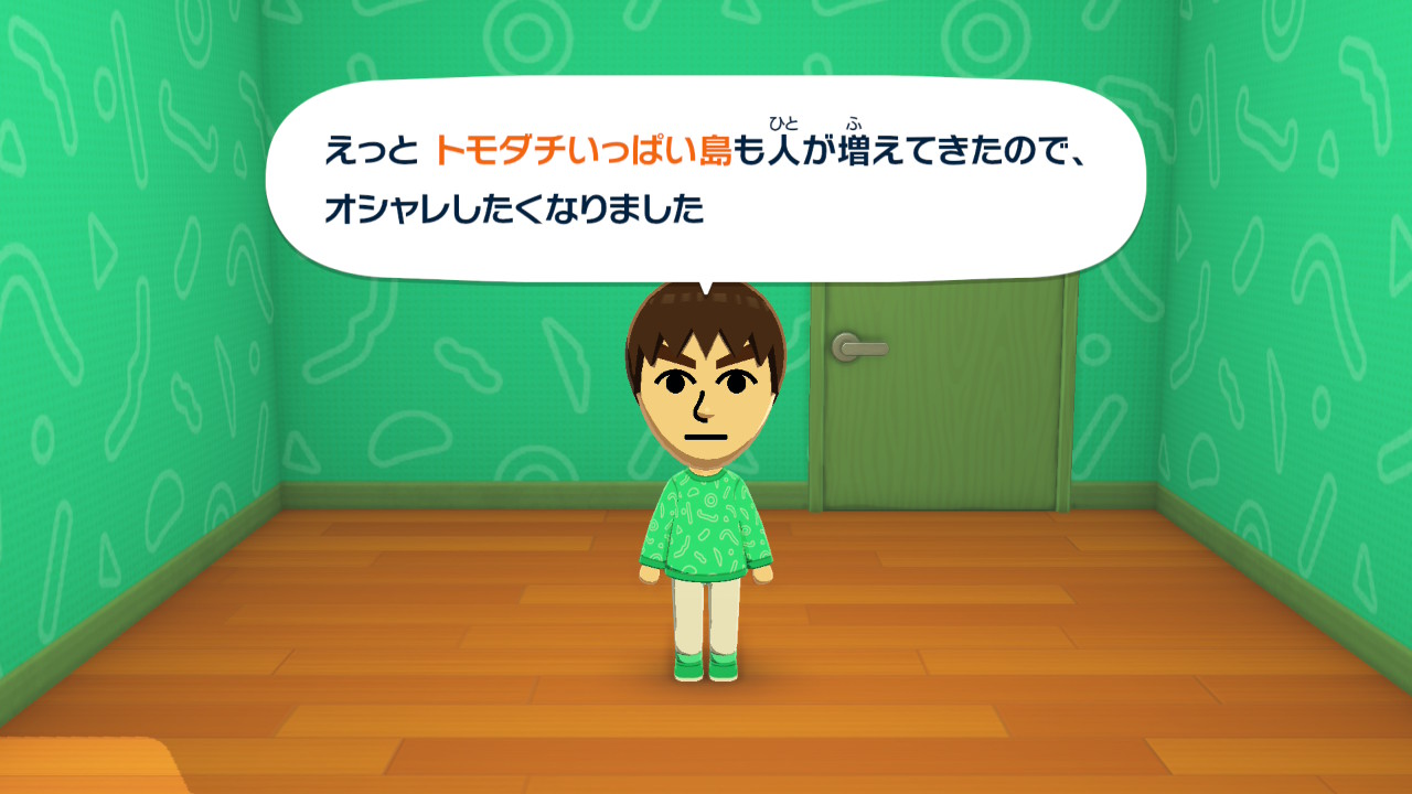 住人となるMiiを3人作成してしばらく経過すると、「服屋さん」がオープンします。