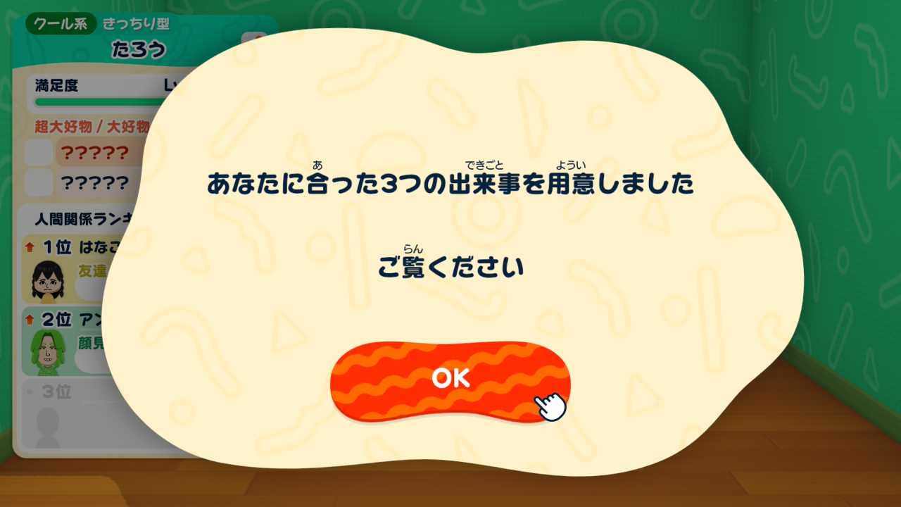 出来事をたくさん見たい場合は、Miiの作成を2人までにするのをお勧めします。