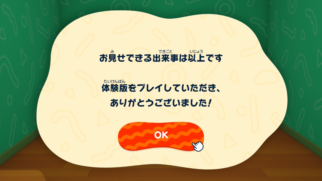 Miiに服をプレゼントしたところで、体験版のプレイは終了します。