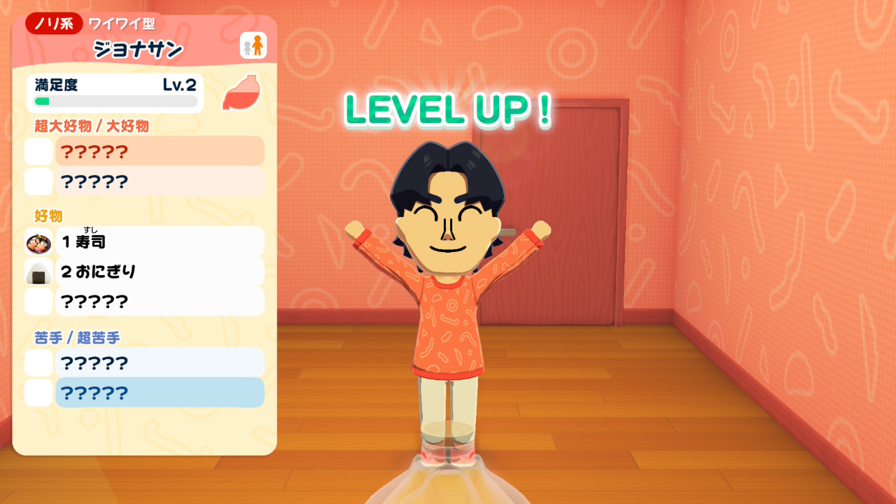 満足度のゲージが満タンになると、住人がレベルアップします。