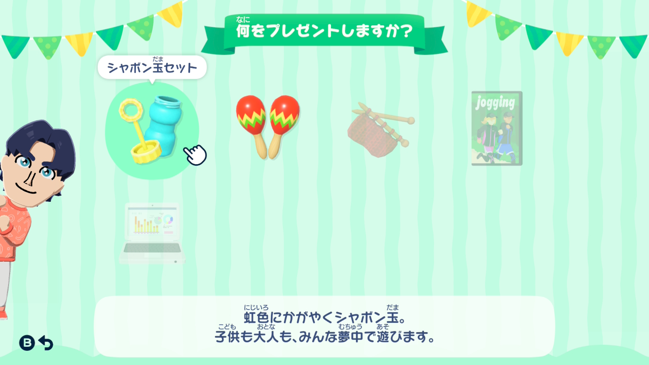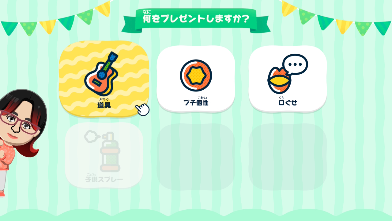 レベルアップした住人には、いつもとはちょっと違う特別なプレゼントをすることができます。