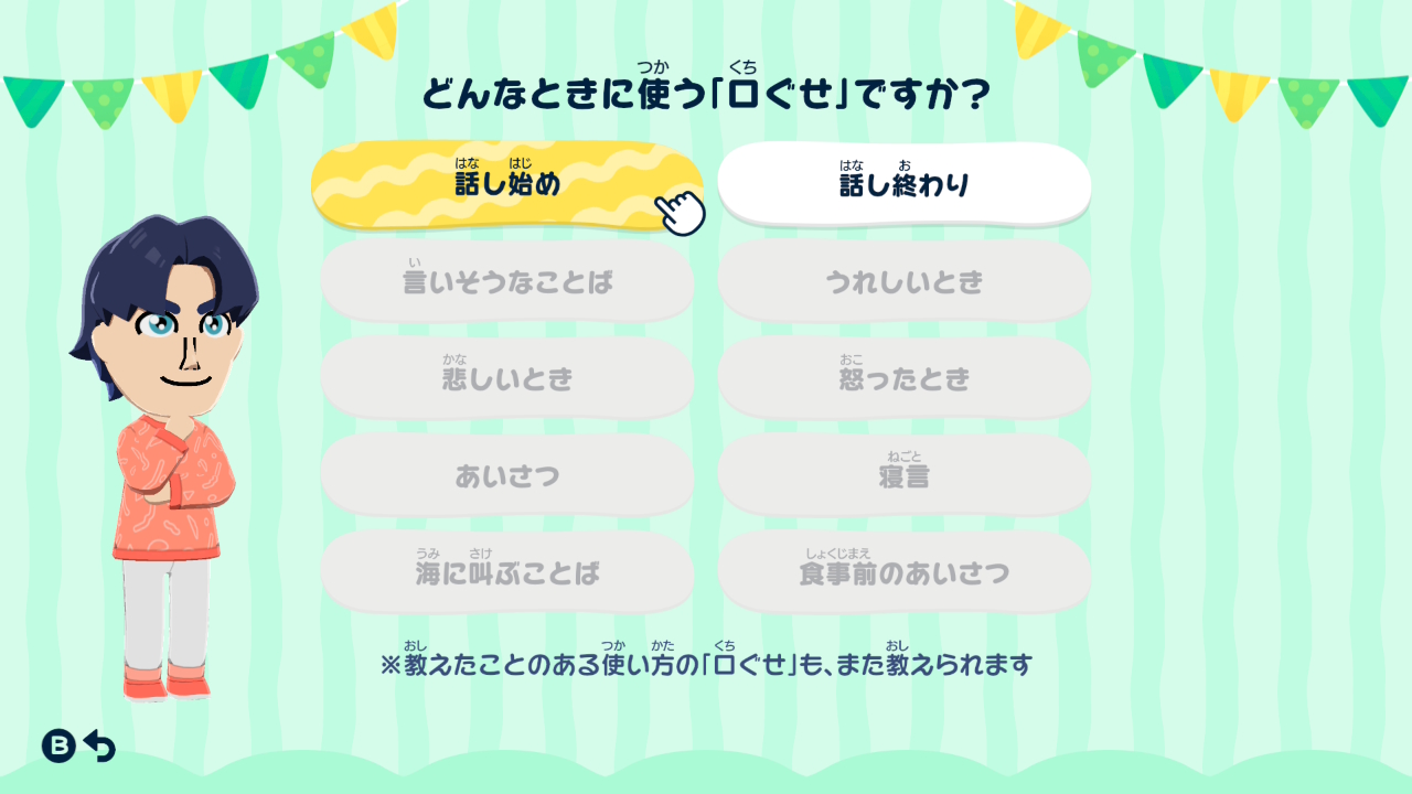 本作では島の住人に言葉を教えると、その言葉を使って会話をしてくれます。