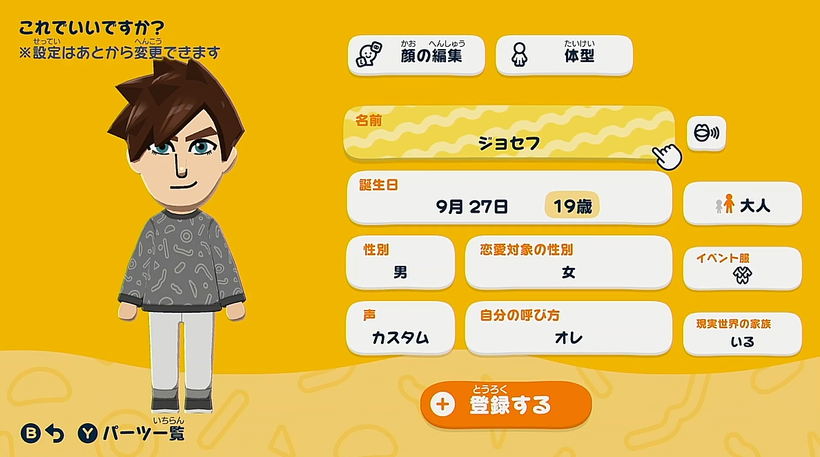 製品版になってから早速4人目の住人が登録できるようになったので、新たにジョースター家のキャラクターを作成します!