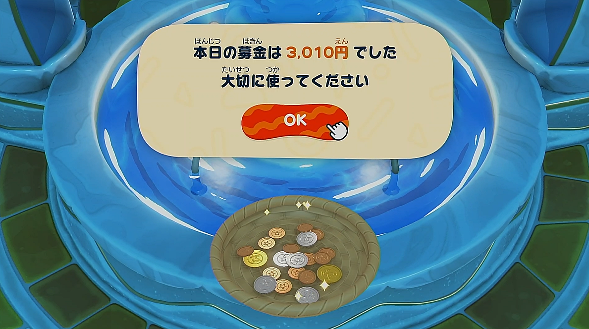 プレイしていてまず驚いたのがこの「募金活動」の存在でした!